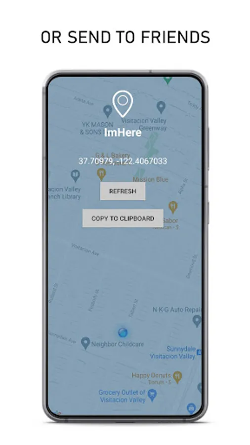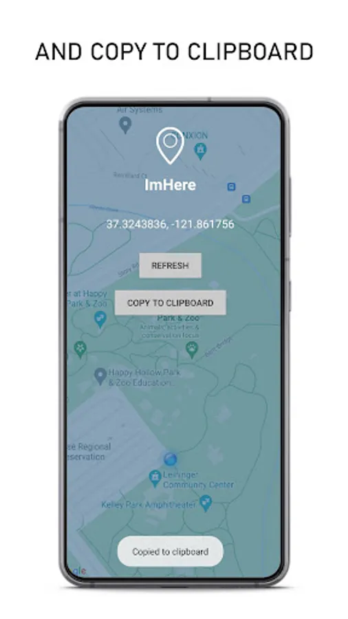 It shows your current location coordinates which you can copy and use it elsewhere like sending to your friends.