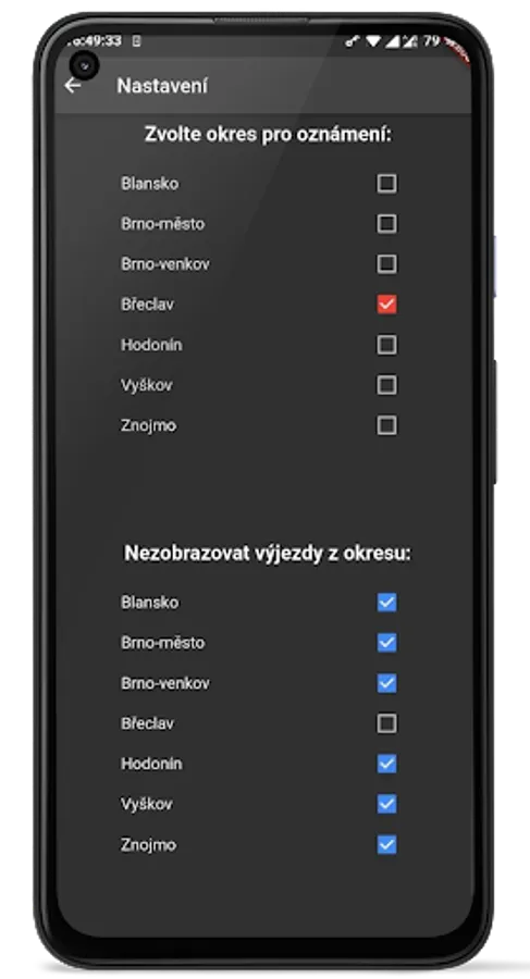 In the application, you select the district you want to monitor and also the district from which you will receive notifications: