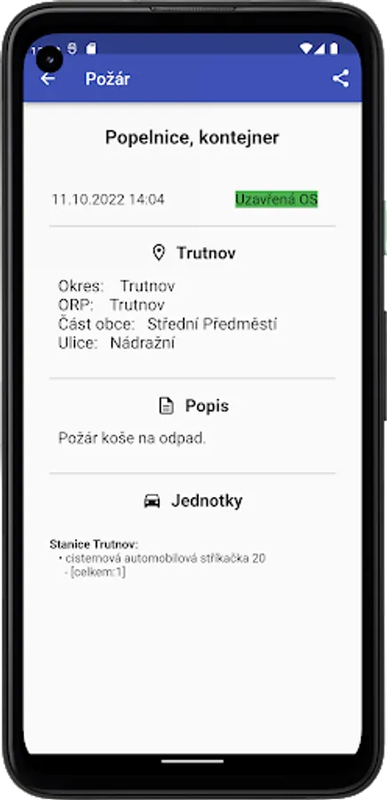 You no longer have to open a browser and look for when and where the firefighters went out. You have all the details quickly in a simple application.
