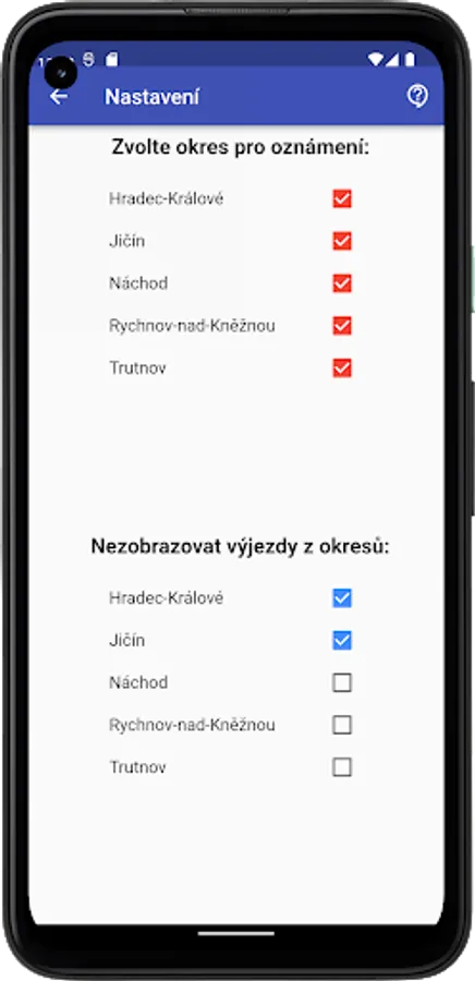 In the application, you choose the district you want to monitor and also the district from which you will receive notifications: