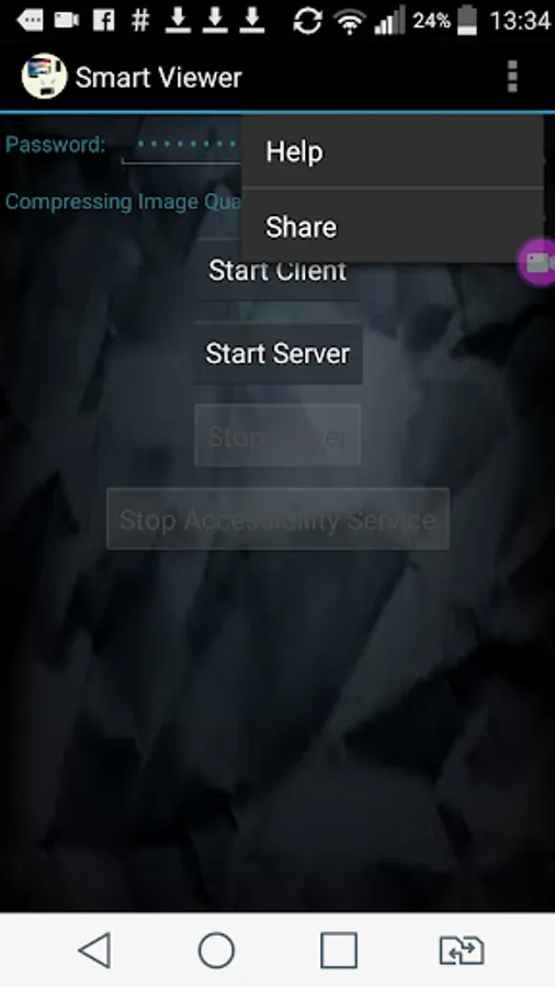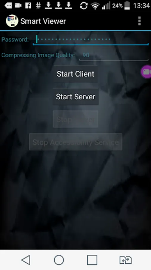 - Allow to start the app as client to view or control remotely other smartphone ( TV box or android mobile) with password to keep secret