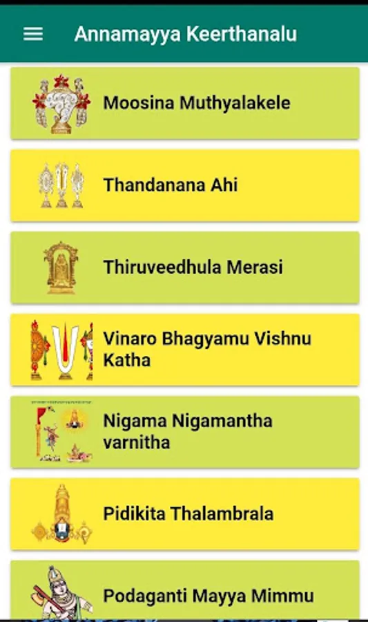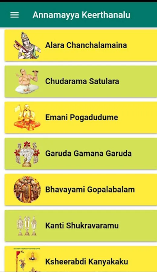 * This App provides totally 30 + annamayya keerthanalu along with lyrics in all languages
