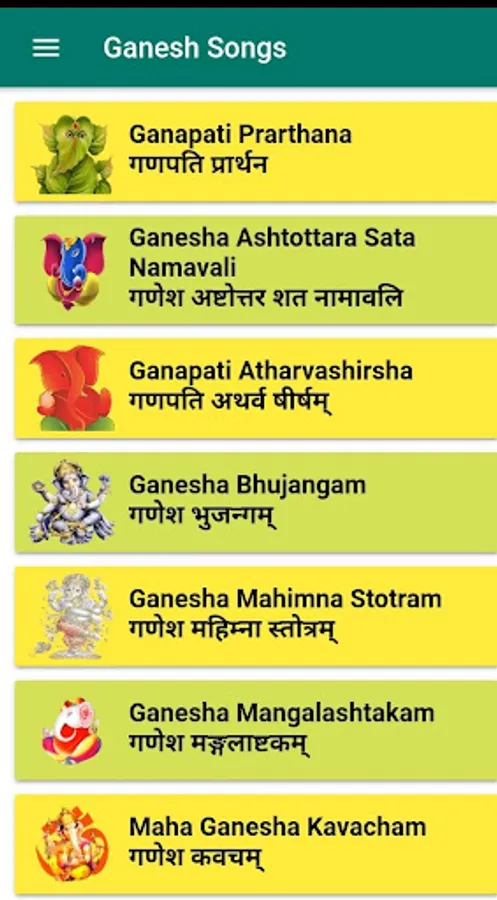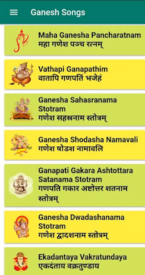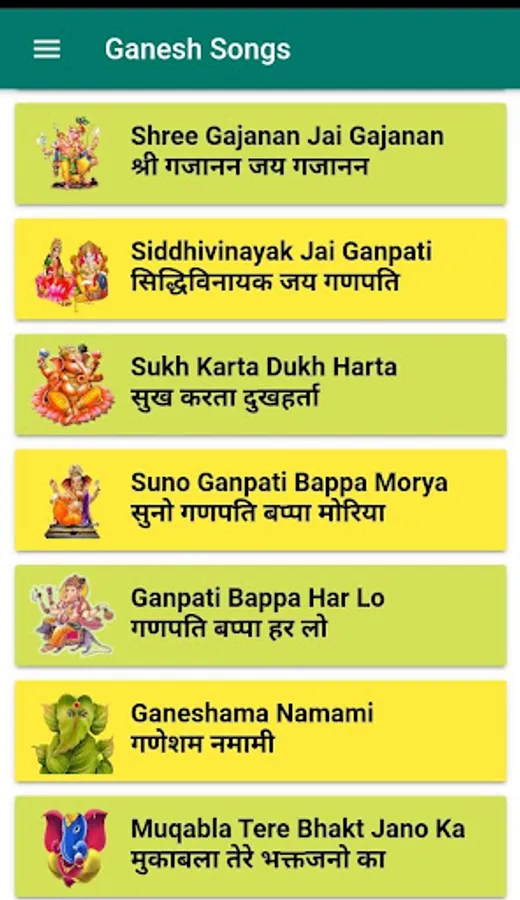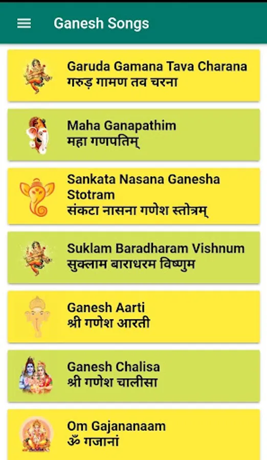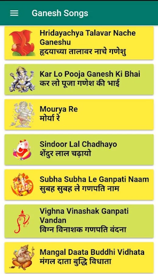 This app contains Lord Ganesh | Vinayaka | Ganapathi devotional audio Songs, Mantra, Aarti, Chalisa with lyrics in all languages