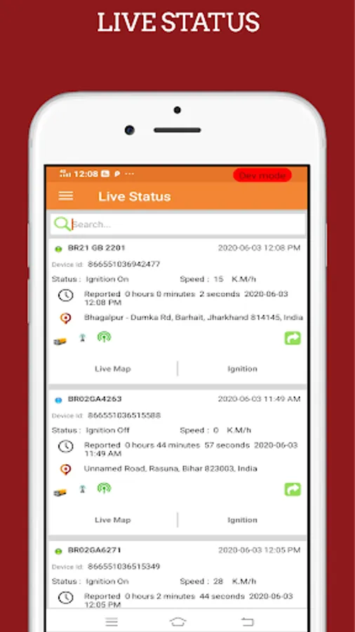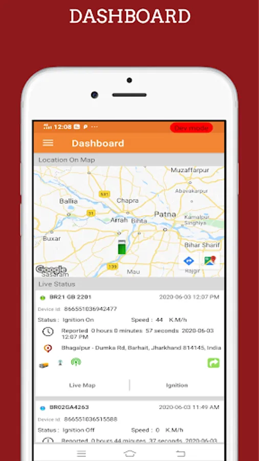 Users can also see their vehicles details like speed, distance, location etc and also see their respective locations. This app also helps user to see the daily route, daily report of their respective vehicles and also made a request for service of vehicle. You can also set the email for your vehicle battery disconnection, on demand email and sms, Ignition on, Geofence and over speeding.