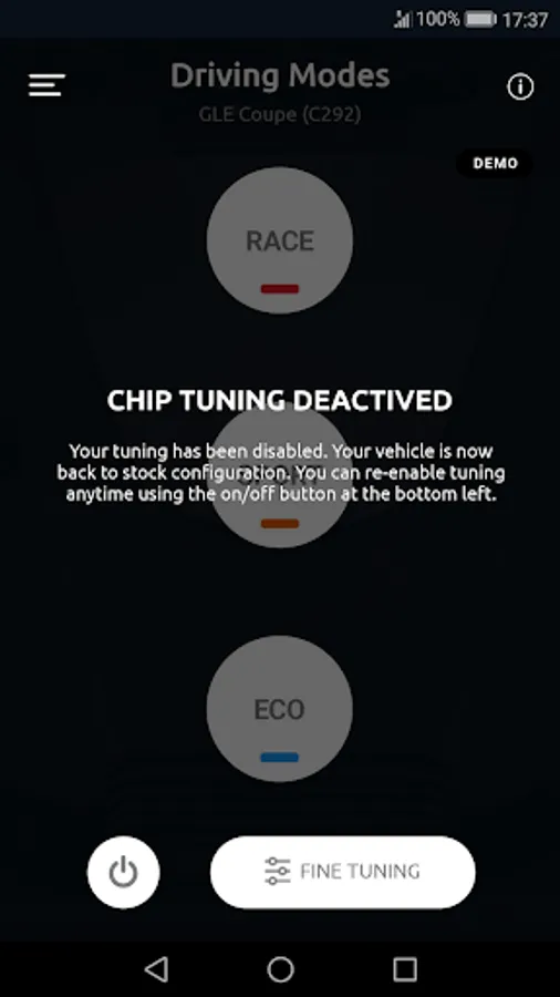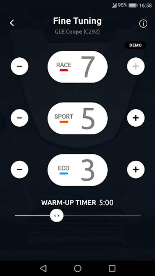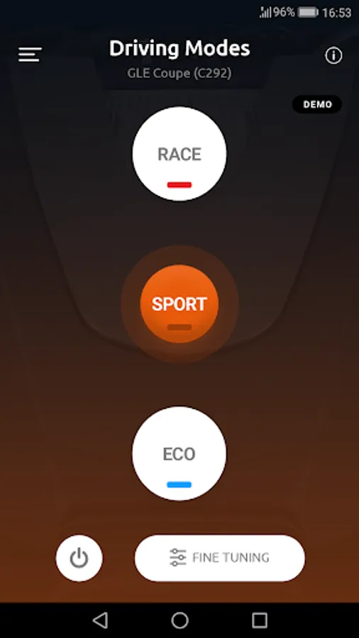 Experience the tuning effect in its most innovative form yet – more power for your car with the tuning module. Fine tune the respective settings to perfectly match your car's specifics and your personal driving style. Map these settings to three easy to the access driving modes Eco, Sport and Race.