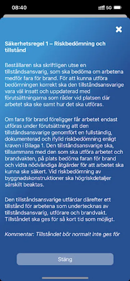 With Flammable Works, su can create and sign permission lists for flammable hot works, digitally. You avoid permits in paper format and all permits are saved for two years. The app is not tied to any particular concept but is open to anyone who wants to create conditions. Write permits offline, copy a previous permit and get answers to most questions about flammable hot work. As a company, you can log in to an administration view where you can see all the permits that are linked to your company and see the permits, which ones are active or not, and take out statistics.