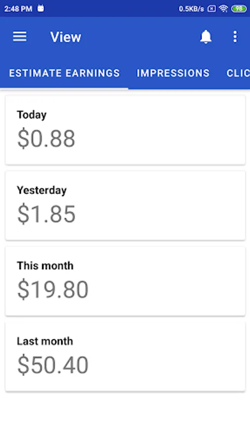 The application for viewing information about revenue and statistics on the use of advertising in your mobile applications and websites.