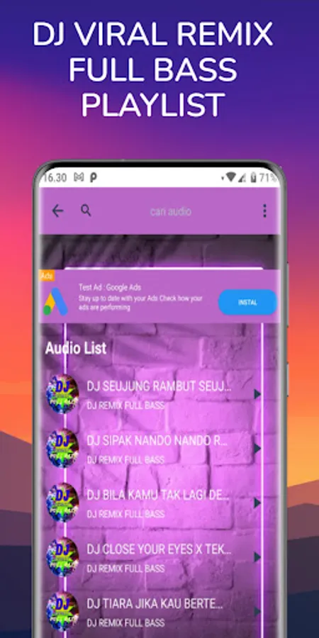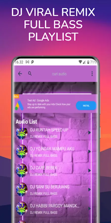 The DJ application from one end of the hair to the end of the nail is a music application for all of you lovers of DJ Remix Dangdut Offline which has an attractive display design and is easy to use. This DJ Seujung Rambut application has many optional features you can also use in all versions of Android with offline playlists and all the songs in the DJ Titip Cintaku Remix Viral application you can listen to anytime and anywhere without fear of running out of quota. The DJ Remix Viral Offline 2022 application is also very light so it doesn't burden your phone's ram, with sound quality that is certainly very clear.