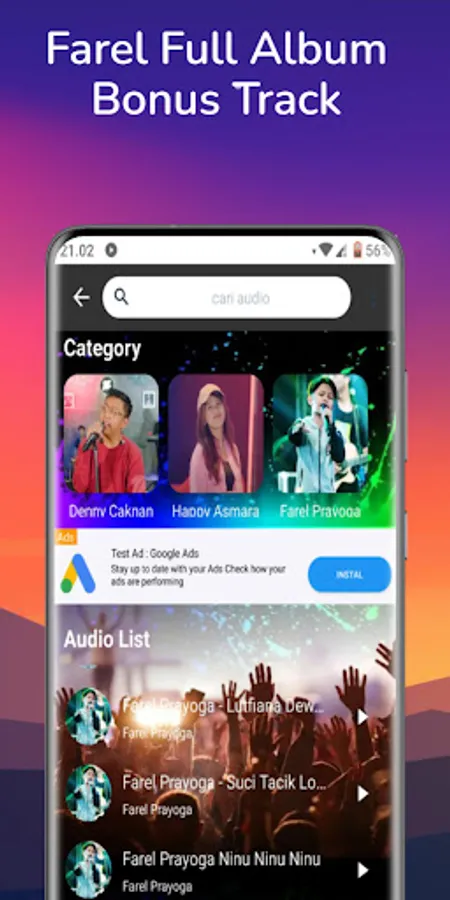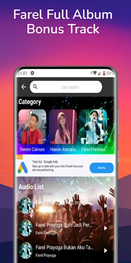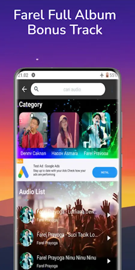 the most complete and newest dangdut koplo farel prayoga full album music player application offline, equipped with several features such as lyrics and equalizer, can karaoke farel prayoga songs full album offline with complete lyrics display, farel prayoga mp3 music player application offline there are also some farel songs Prayoga feat with well-known artists such as Farel Prayoga feat Yeni Inka, Farel Prayoga feat Fire Amanda, Farel Prayoga feat Lutfiana Dewi, Farel Prayoga feat Vita Alvia, and Farel Prayoga songs of various safaris