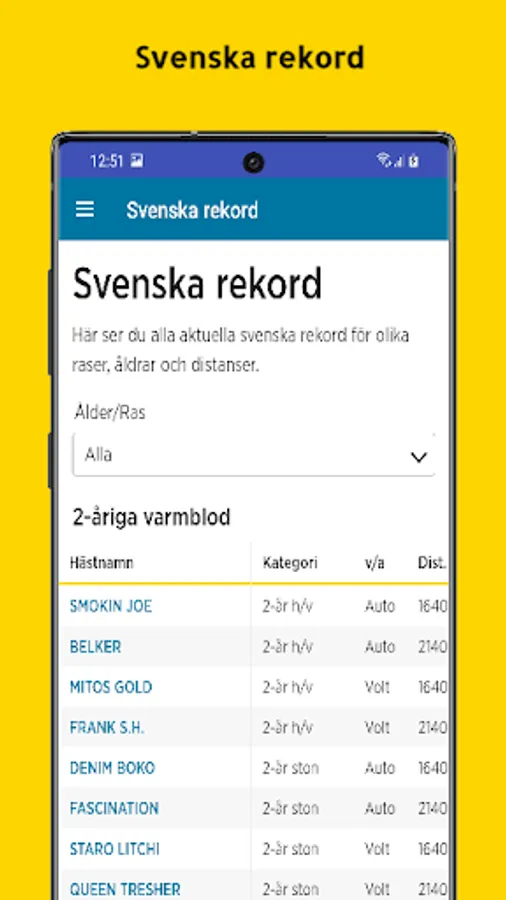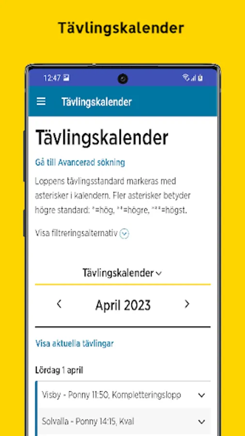 Application for Swedish trotting races, Swedish trotting competition calendar, Swedish trotting.
