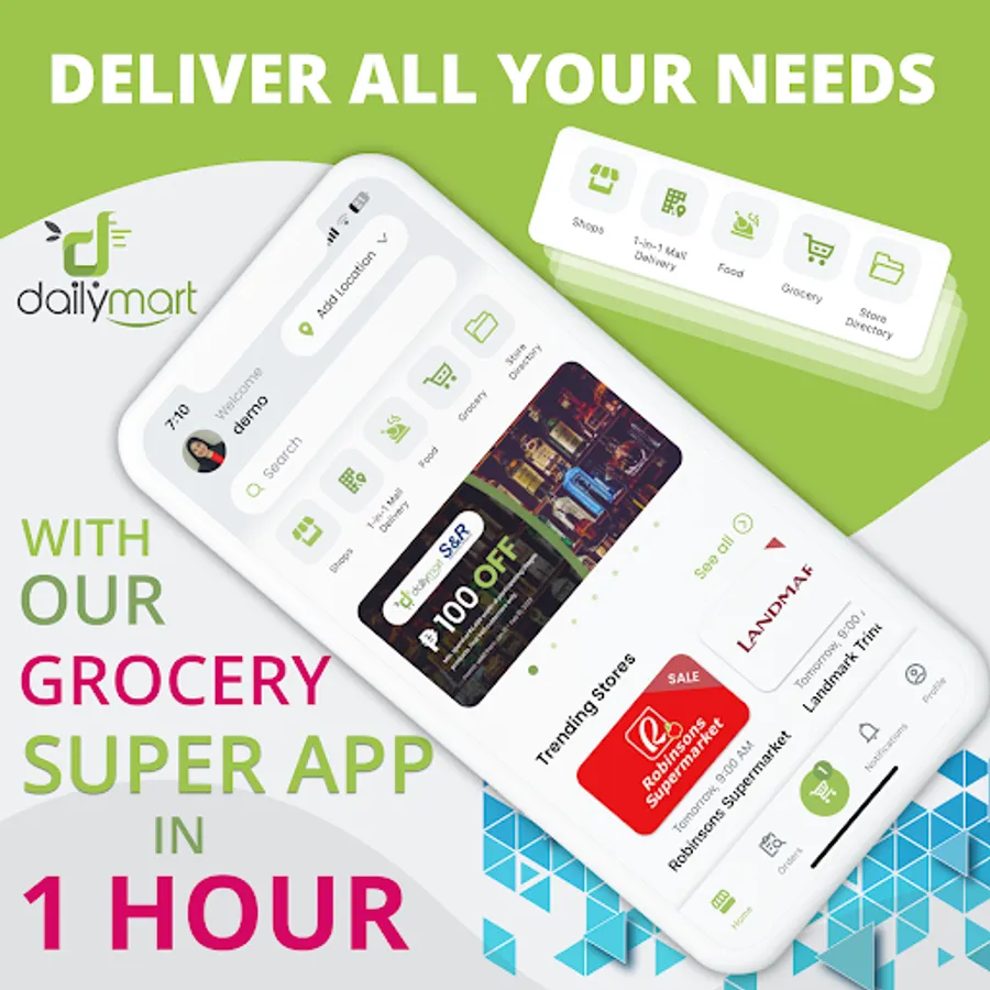 Shop a wide selection of groceries online from over 120,000 products. Fresh, frozen, and dry goods are delivered within two hours. S&R Supermarket (no membership necessary), Robinsons Supermarket, Landmark, The Marketplace, Shopwise, and All Day Supermarket are all places to shop.