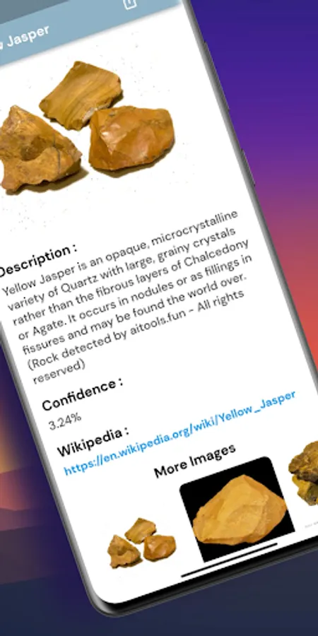 Simply take a photo of a Rock and Stone to find details. You can find many different type of stone and rock from your phone and camera.