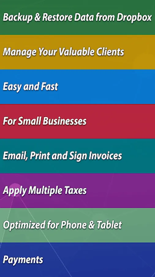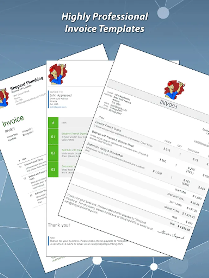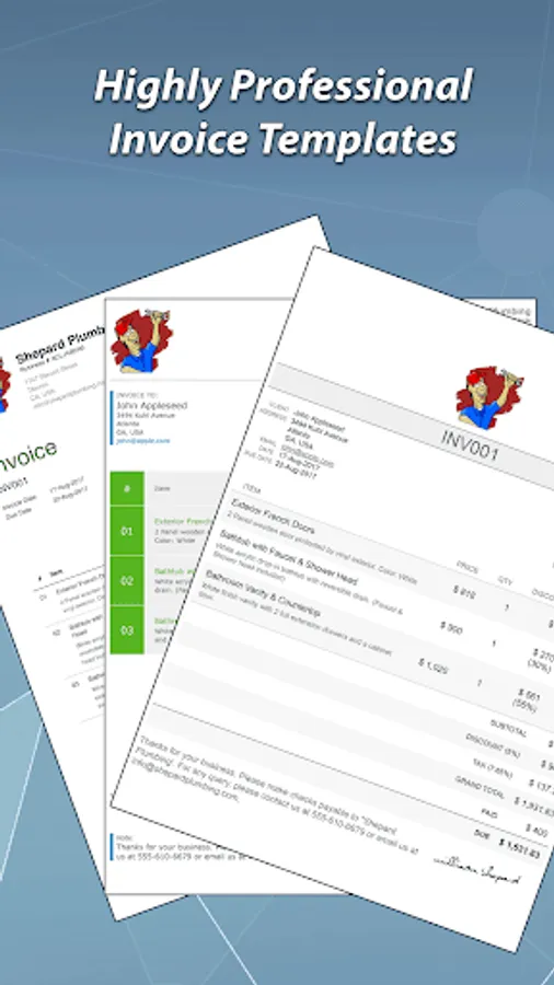 Invoice & Estimate Maker app help you to quickly create professional invoices and send them to your customers. Its a perfect app for web designers, contractors, musicians, freelancers and all kind of small business owners.