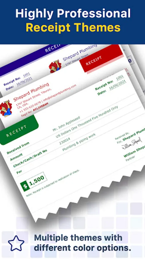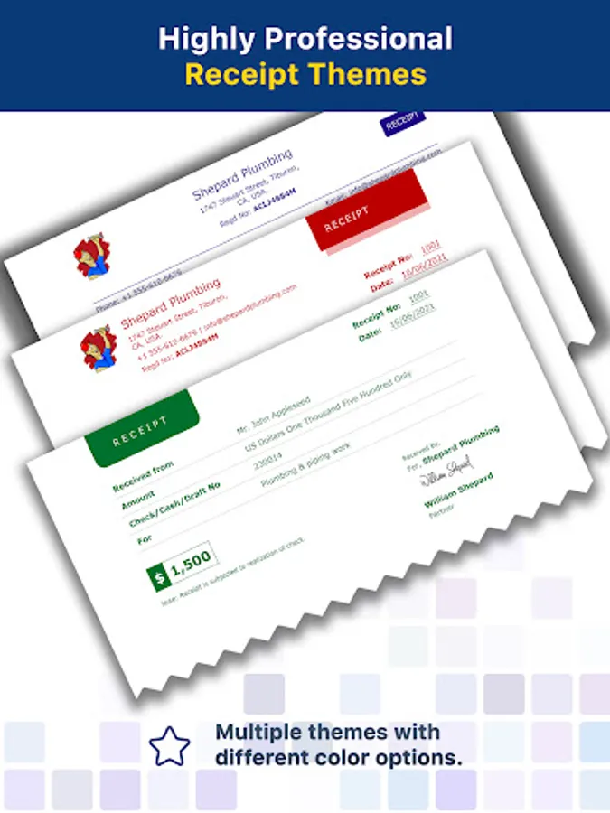 Receipt Maker app allows you to create professional receipts in seconds. You can choose from different themes and colors to make receipts and send them straight away.