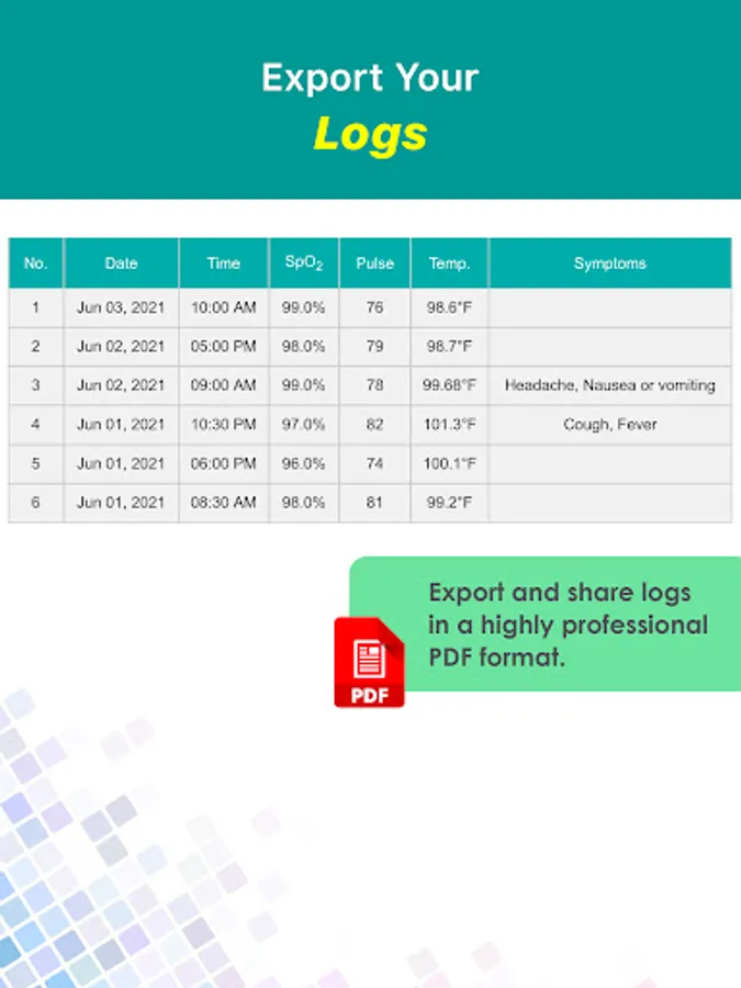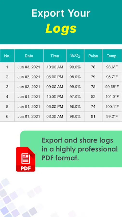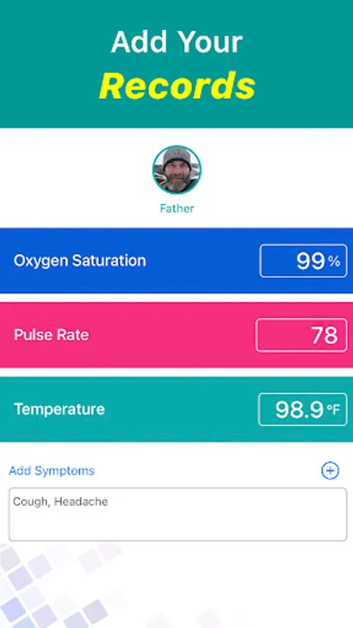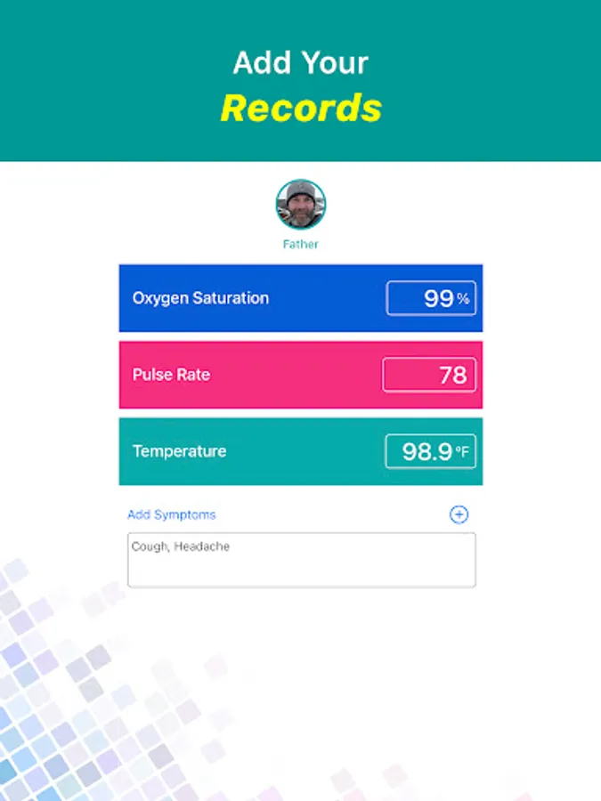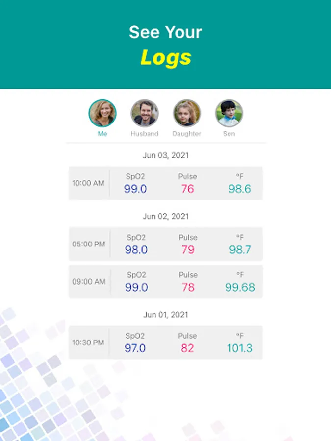 Log your blood oxygen (SpO2), Pulse rate, and body temperature in a simple way. The Blood Oxygen & Temperature app offers a beautiful interface to log your health data. This app also allows you to add your family members. You can easily log all the data for all your family members.
