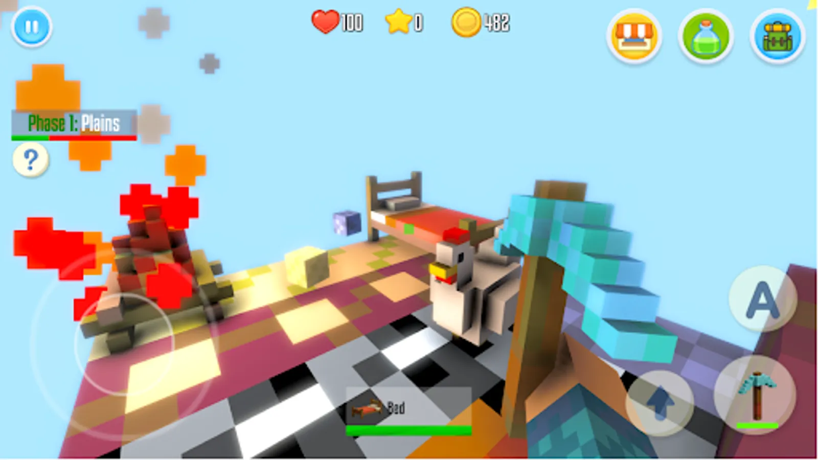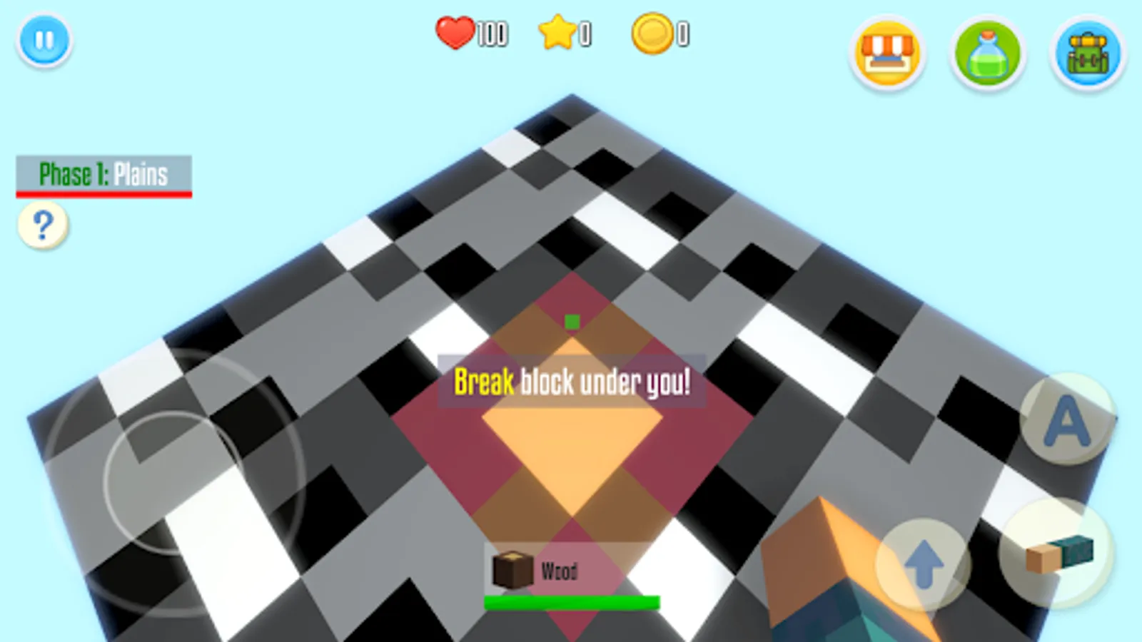 The whole game consists of several phases such as Plains, Dungeon, Desert, Winter and others. You must get to these phases by completing tasks. The tasks can be different, for example, collect 50 blocks. The target is listed on the left side of the screen. Progress is displayed in the same corner.