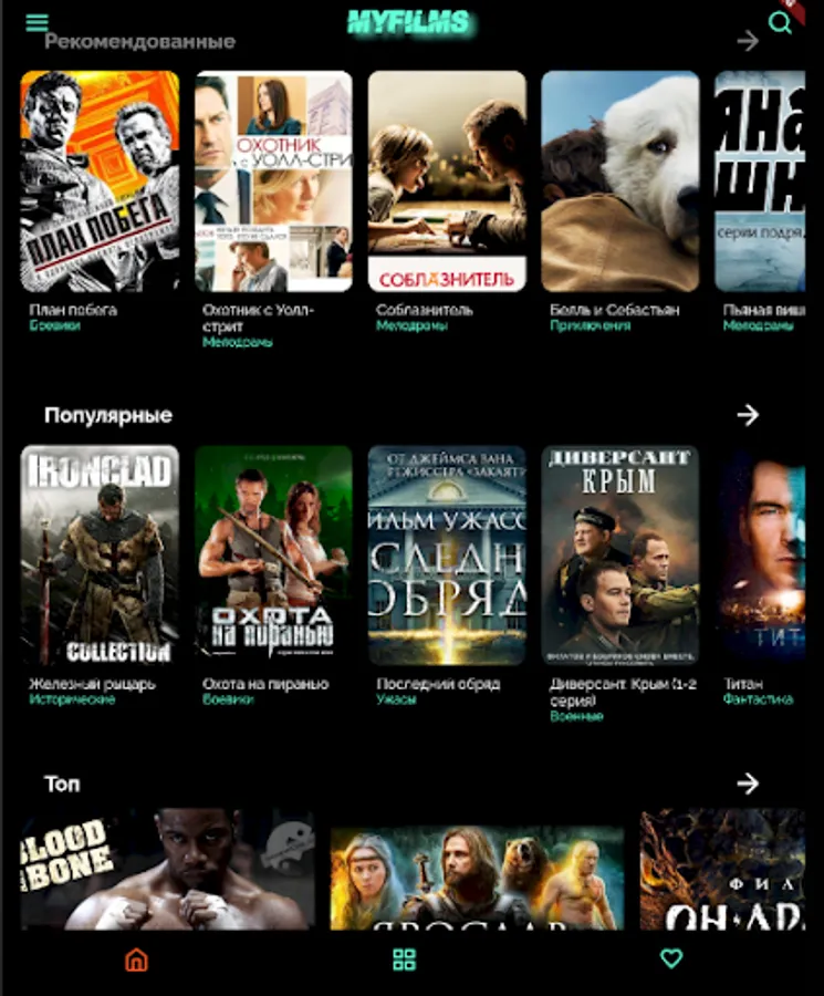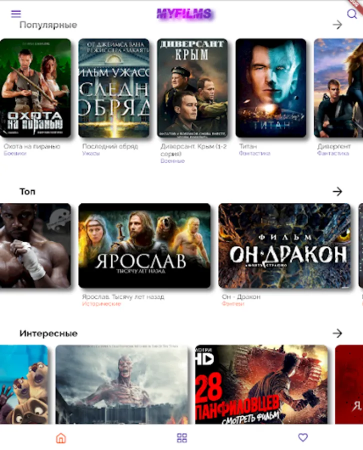 Easy-to-use functionality and design, the main screen displays a feed of the latest TV films where you can always find our new cinema online without a subscription,