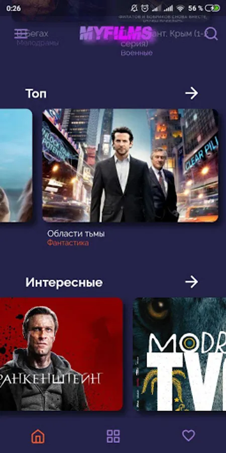 in the catalog tab it is easy to select your favorite online movie. We found interesting films for free, but there is no time to watch it at that moment, or did not have time to finish watching