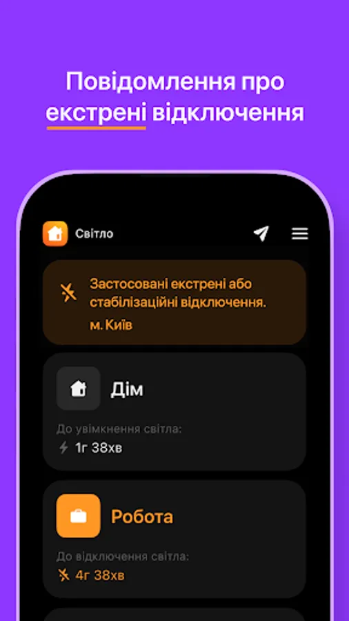 (2) This application does not represent any government, political organization or company such as DTEK (or other oblenergo). You use the data provided in this application solely at your own risk.