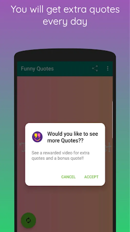 With this app you will get funny quotes daily that will help you to begin your day with more happiness, more strength to get on the world.