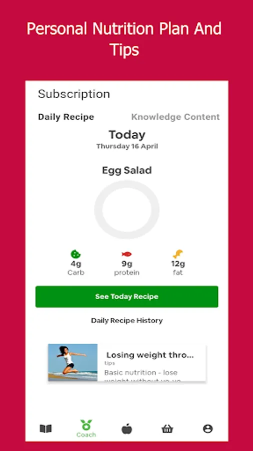 ● Eating plan with food tracker (keep a simple food journal with our installed diet tracker)