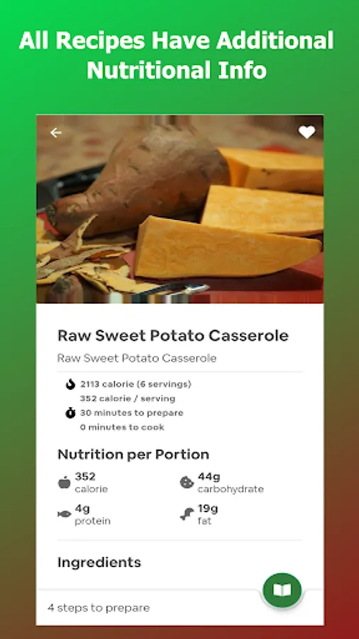 This raw food diet app is the perfect assistant for anyone who wants to get started on a raw food diet for free. The app does not simply provide a rich collection of recipes but also explanations, a knowledge base, a food table, and a raw food diet calculator. Our carb counter helps you achieve your desired weight and eat well at the same time.