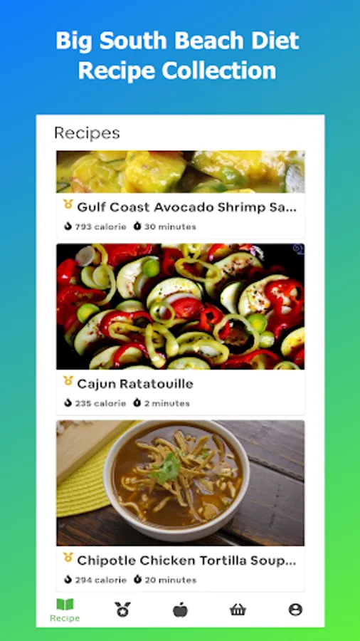 ● Huge South Beach Recipes collection consisting of breakfast recipes, main courses, desserts and salads.