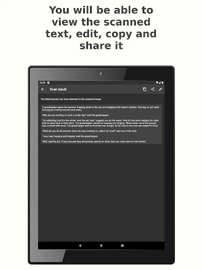 Editing is a breeze. The app’s design ensures that post-scan, every text scan can be edited to perfection. And sharing? Even easier! With a couple of taps, your digitized content can be shared across various platforms. Whether it’s an academic excerpt or a must-try recipe, the world is just a text OCR scan away.