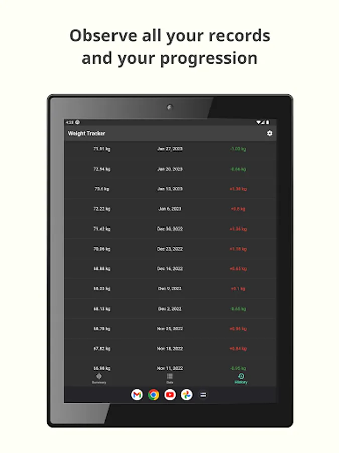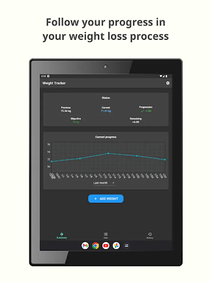 In the journey of weightloss or muscle gain, dedication, persistence, and the right tool like this app are crucial. With features like the weight diary, BMI calculator, and an integrated weight scale system, you have the most comprehensive weight tracking app at your fingertips.
