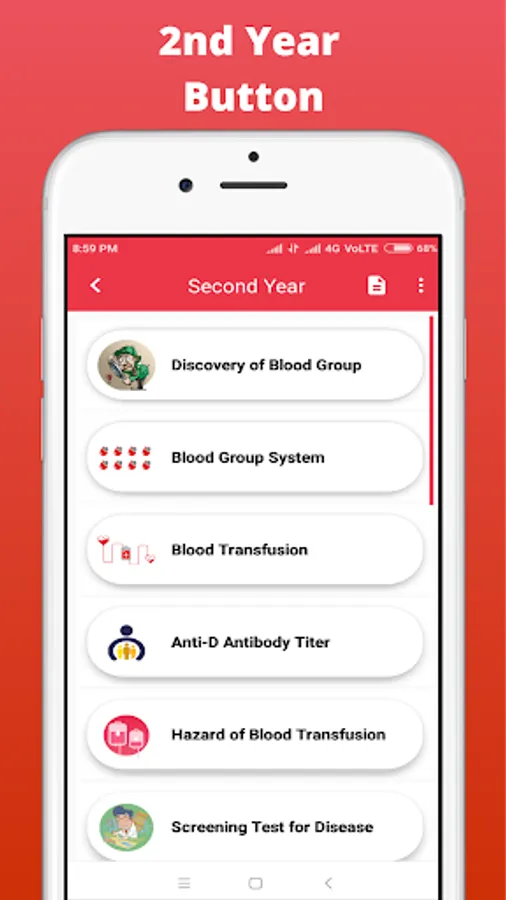 The specialty of Hematology in Hindi App is that the content has been defined year wise and has been arranged in a very systematic way.