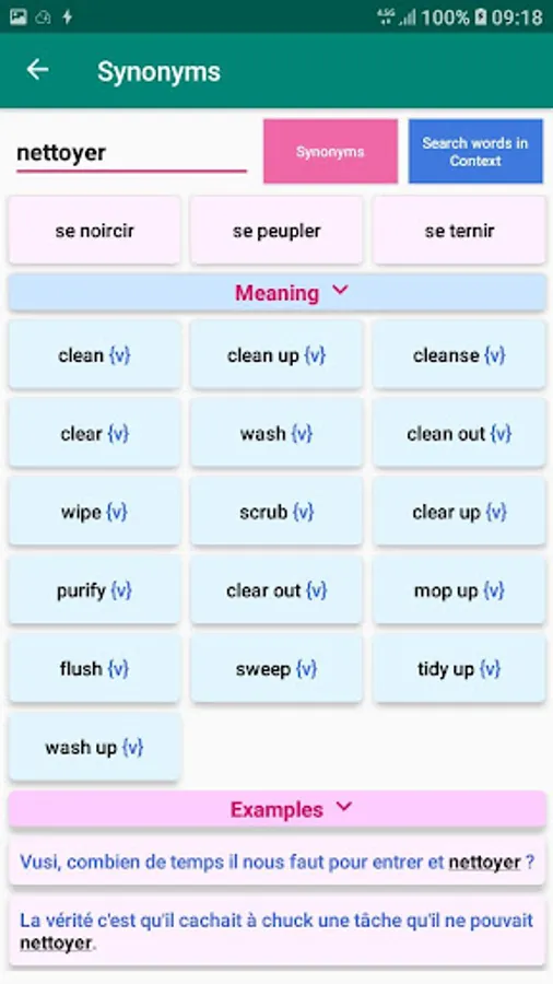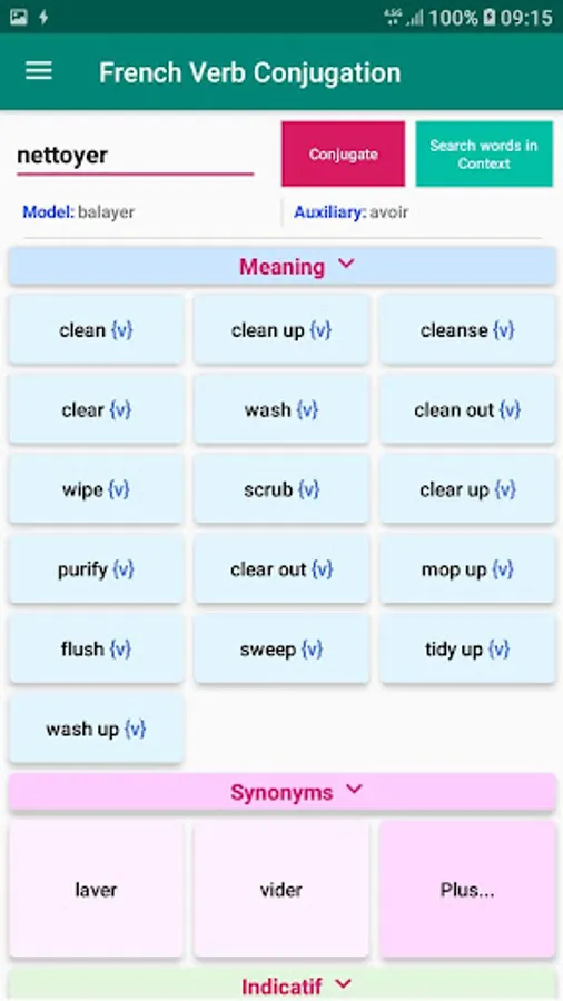* Translate, conjugate, spellcheck , Synonyms Dictionary in app.