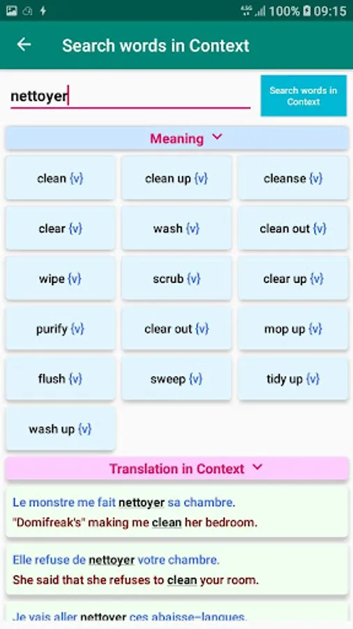 * Get relevant translations in context with real-life examples for millions of words and expressions, using natural language search engine applied on bilingual big data.
