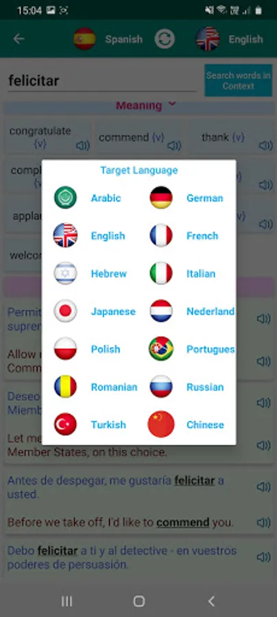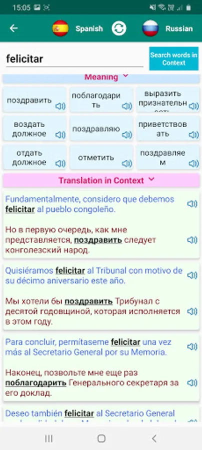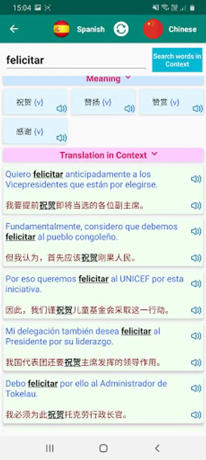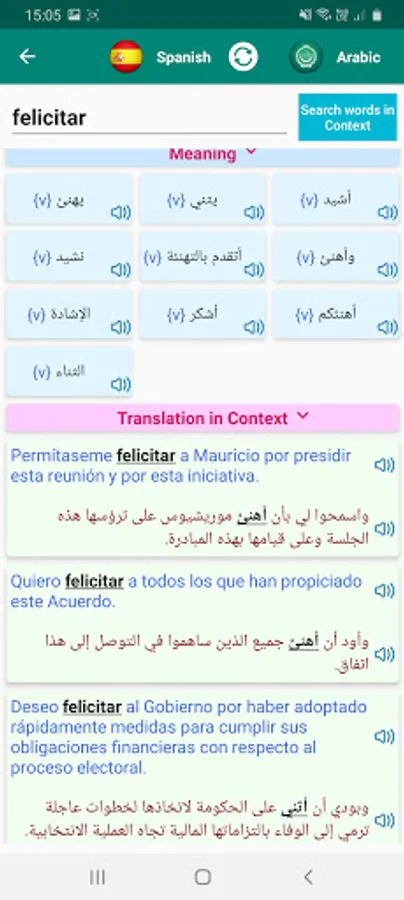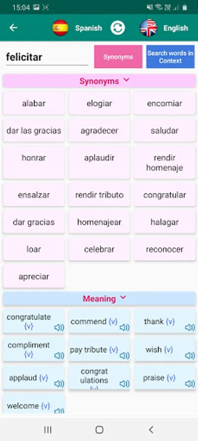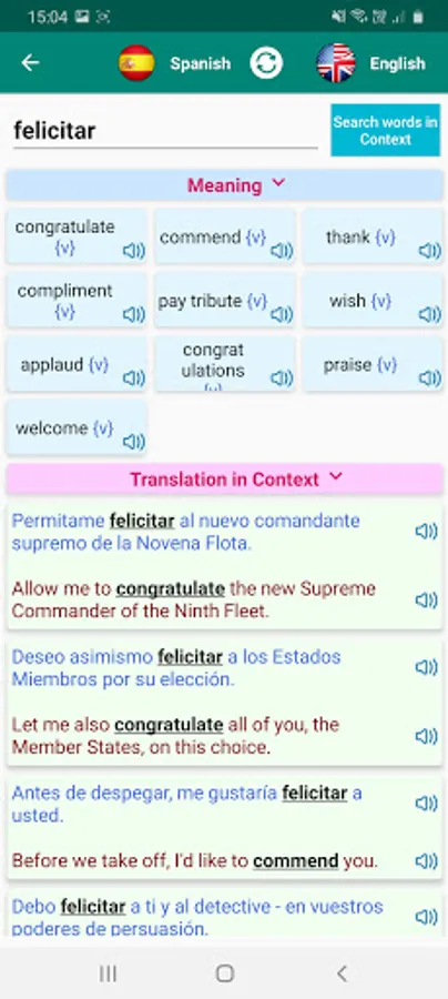 * Search by speaking and hear back the pronunciation of the translations