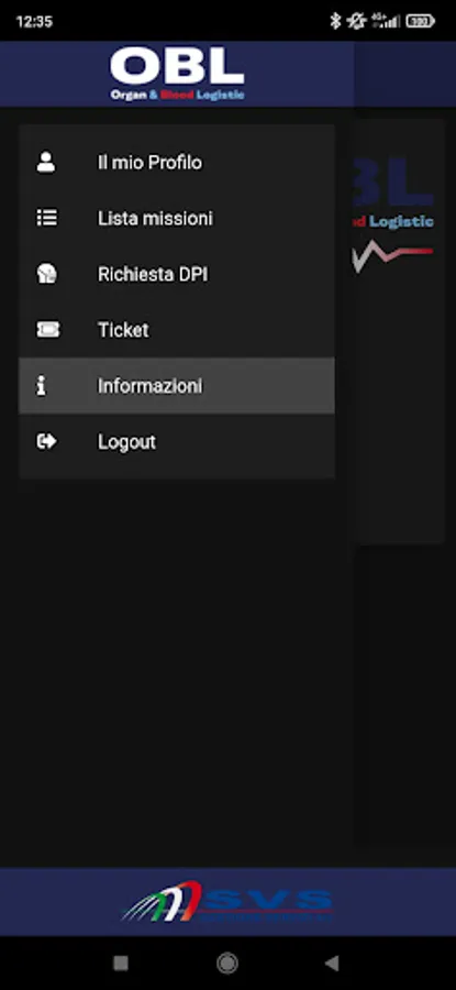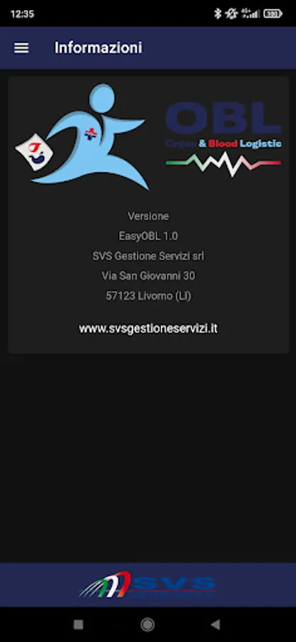 App for exclusive use by the staff of SVS Gestione Servizi SRL and CTS for the operational management of health logistics services relating to the transport of biological samples, blood components and organs within the territory of the Tuscany Region.