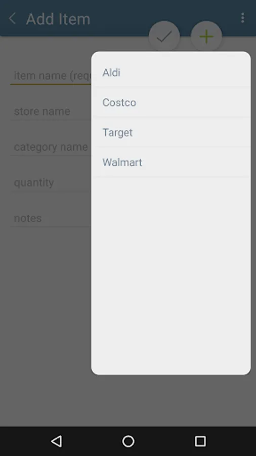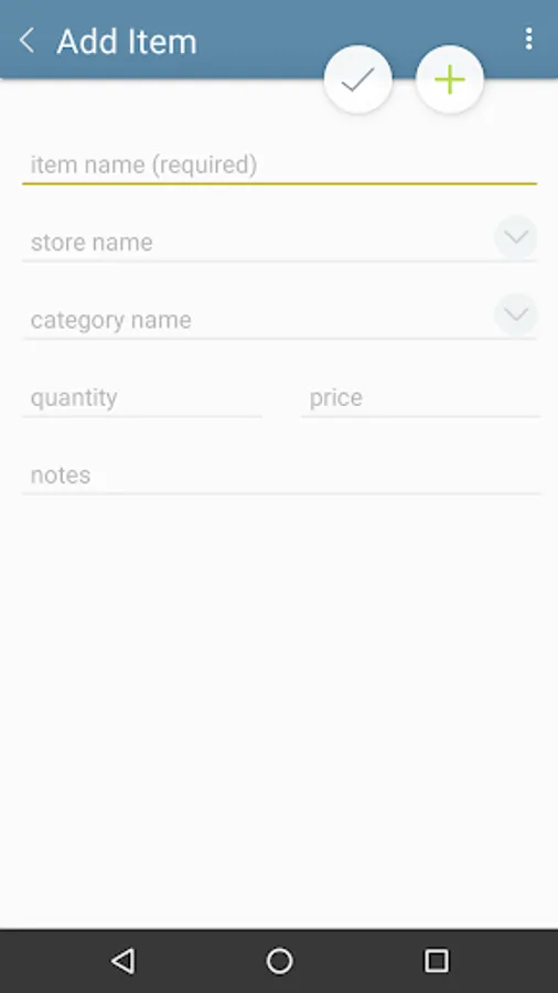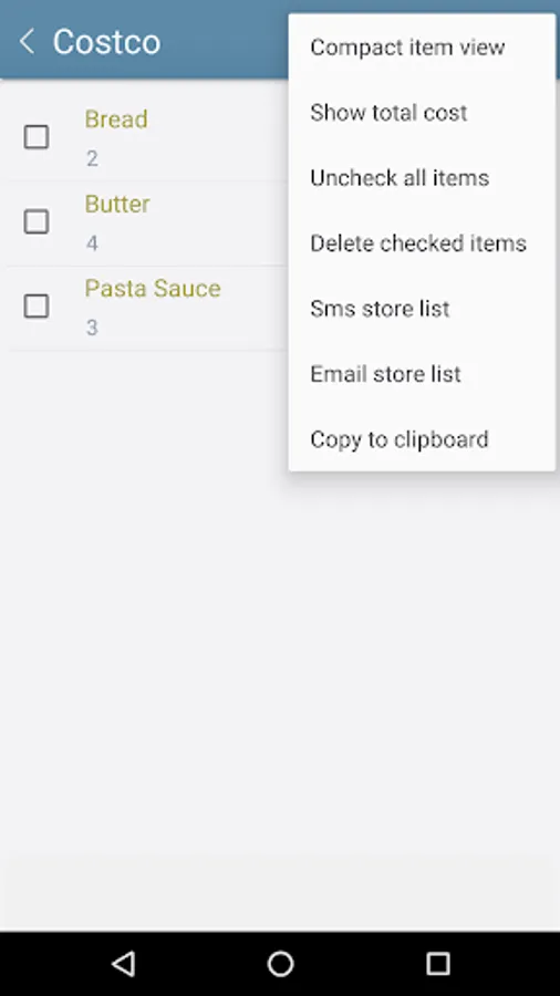 The concept of this app is very simple. You create a 'Main list' which will be your permanent list of items. From the 'Main list' you can simply check items to add to your shopping list. You can easily edit any item in your 'Shop list'.