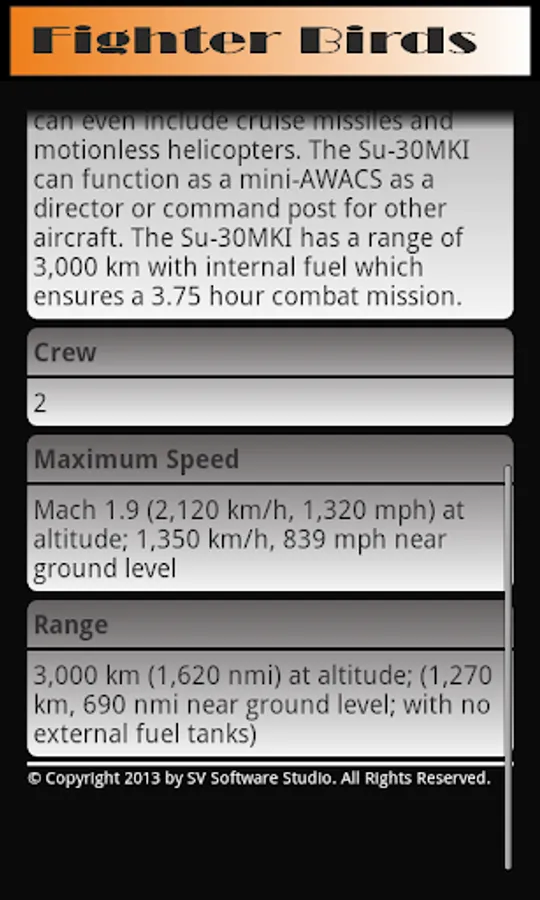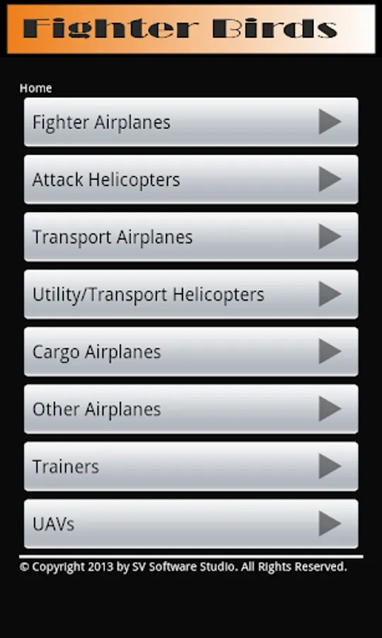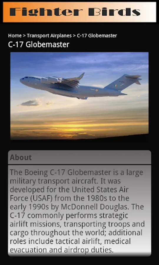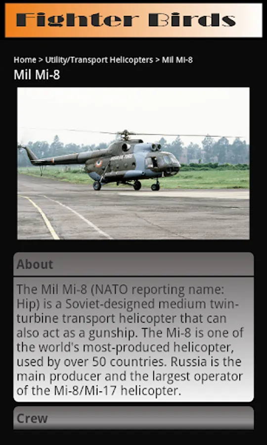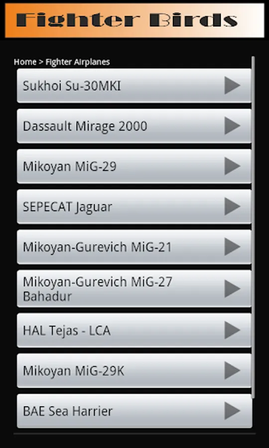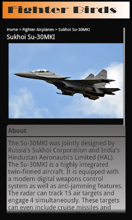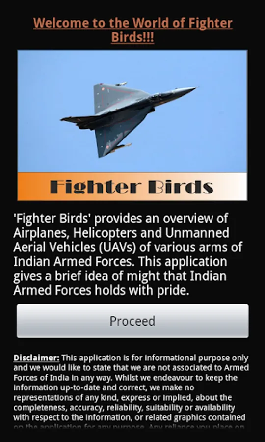 Fighter Birds is about Airplanes, Helicopters and Unmanned Aerial Vehicles (UAVs) which will give you a virtual tour of around 50+ Aircraft of various arms of Indian Armed Forces. You can explore each aircraft with stunning pictures and short informational description.