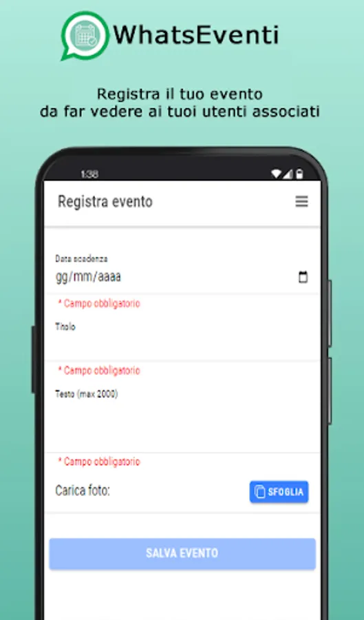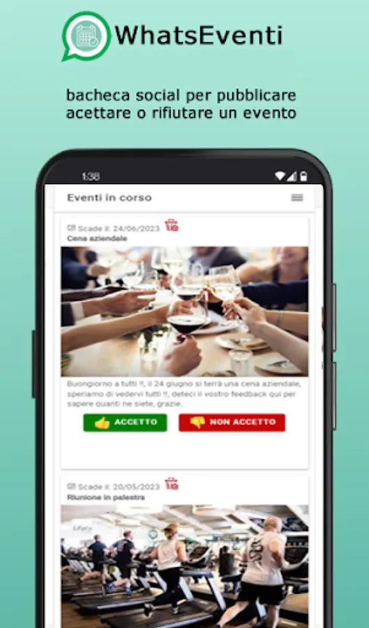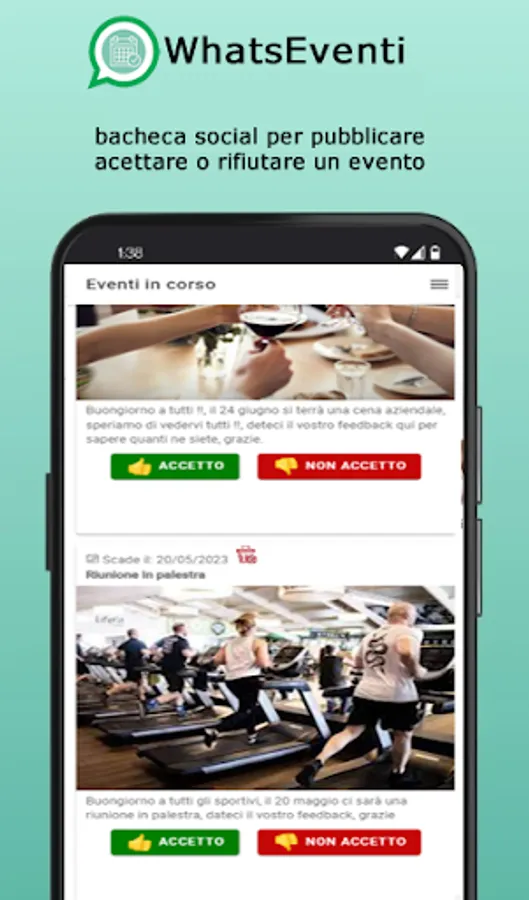 It is a whatsapp type app designed however for the publication of only events created by the administrator.