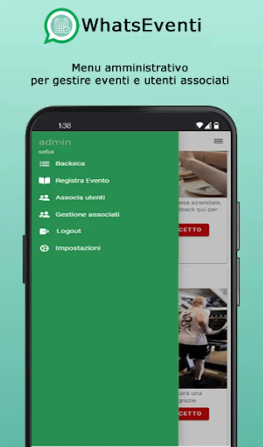 the administrator will be able to associate all the users he wants, and these users will only be able to accept or reject the events, therefore there will be an administrator area and a users area. Useful for businesses, shops, gyms that just want to use a mini social network to publish only communications without being interrupted by other inappropriate speeches.