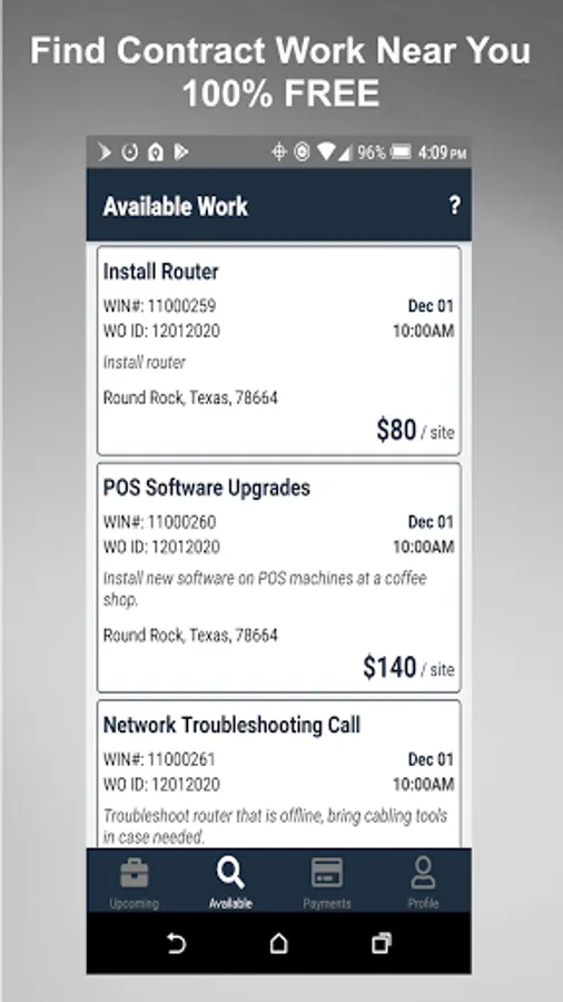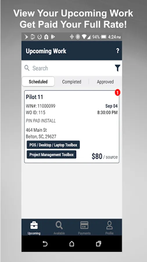 Mobile app for SourceW9 Contractors to manage their work flow.