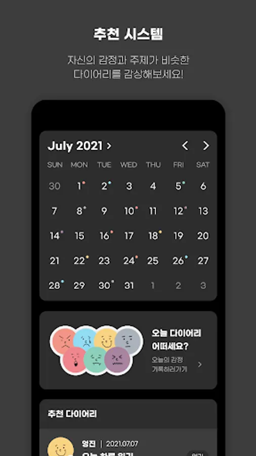 You can get recommendations for diaries that are similar to your emotions and keywords.