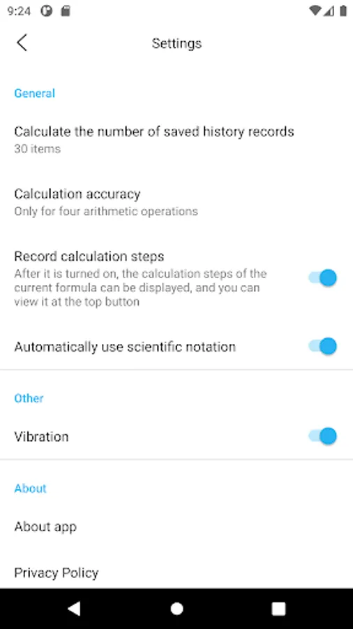 This app goes beyond basic arithmetic operations and offers a comprehensive set of functions to cater to various mathematical needs. It can handle simple calculations such as addition, subtraction, multiplication, and division with ease. Additionally, it supports more advanced functions, including trigonometry (sine, cosine, tangent), logarithms, exponents, square roots, and percentages. Whether you need to solve complex equations or perform quick calculations, this app has got you covered. One of the standout features of this calculator app is its history function. It keeps track of all your previous calculations, allowing you to review and reuse them whenever needed. This feature comes in handy when you want to double-check your work or perform similar calculations without having to input the values again. For added convenience, the Calculator App supports both portrait and landscape orientations, adapting to the orientation of your device. It also provides customizable settings, allowing you to adjust the number of decimal places, choose between degrees and radians for trigonometric calculations, and select from different color themes to personalize your experience.