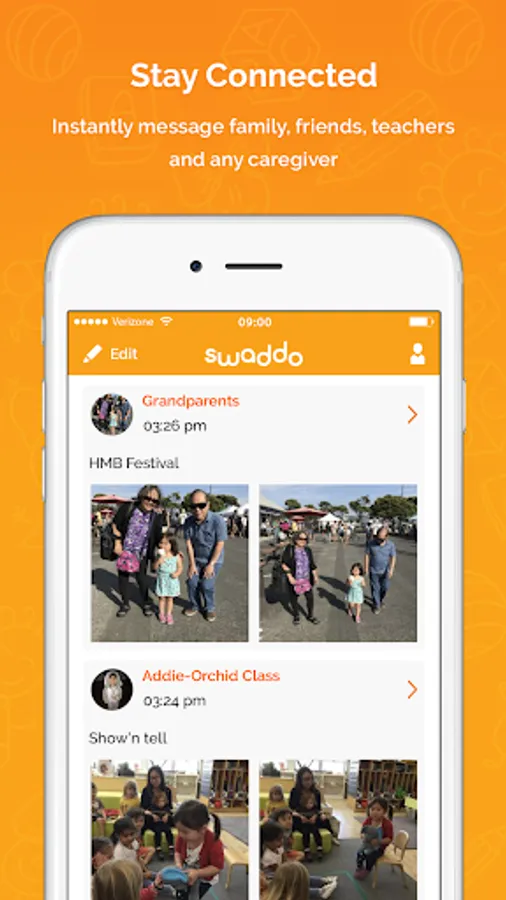 Groups – Easily create group threads for ongoing, personalized messaging. Individuals or groups may include family, friends, educators, class parents, nannies, babysitters, pediatricians, absolutely anyone!