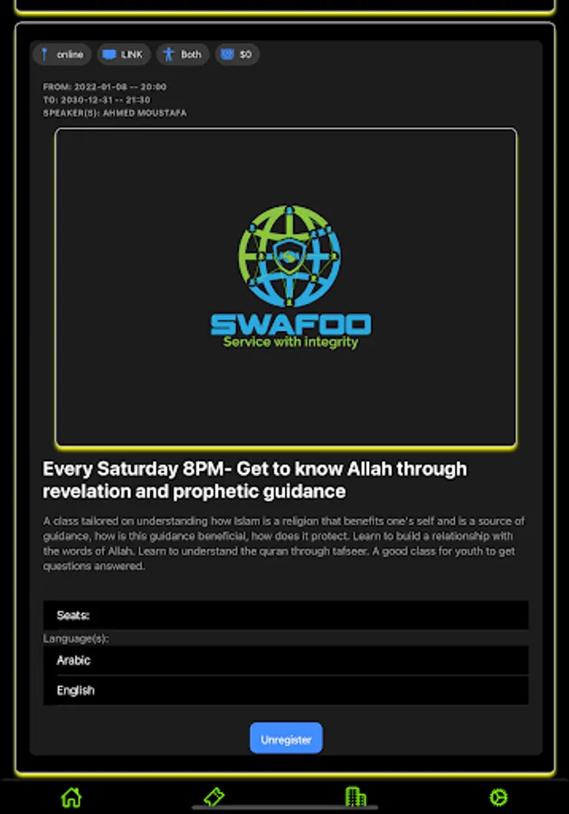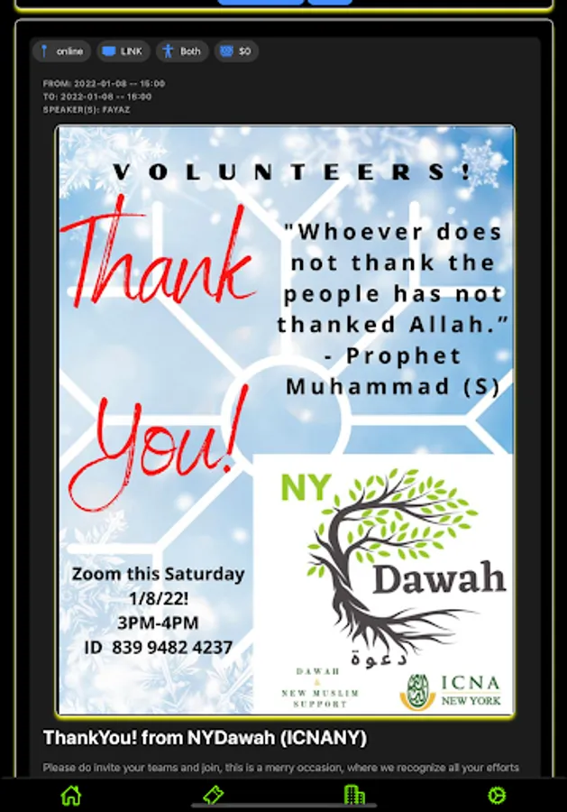 Never miss an event online or in person, you don't have to go to the masjid to know whats going on, you also don't have to miss a salah if you know what time each masjid prays at.