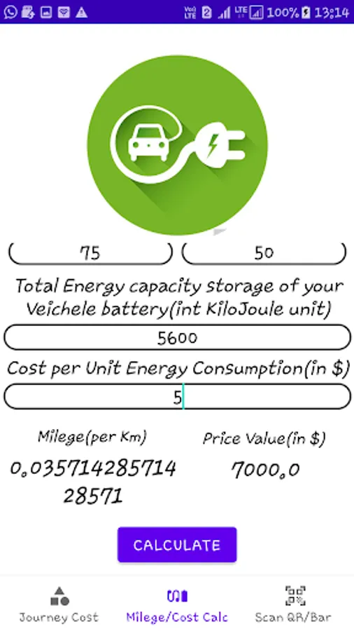 EV Milege Calculate,QR Scanner Screenshots