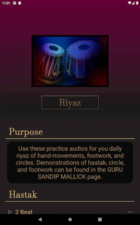 Kathak Saangi is the perfect companion for kathak dancers. Every module in this app offers a unique benefit to dancers. Thoughtfully crafted, it will be very useful for their daily practice routine - a must have app for the drills with the different levels of layakari and recitations. Kathak dancers will study important aspects and elements of Taals, Lari, Upaj and more. This app is an effective tool in understanding the complex calculations of different types of Tihais and it will help dancers to create their own Tihais. Guru Sandip Mallick ji demonstrates a very productive sessions on the geometric concept of kathak as well as different types of footwork. At the same time, dancers will explore contemporary octopad compositions for custom choreographies.