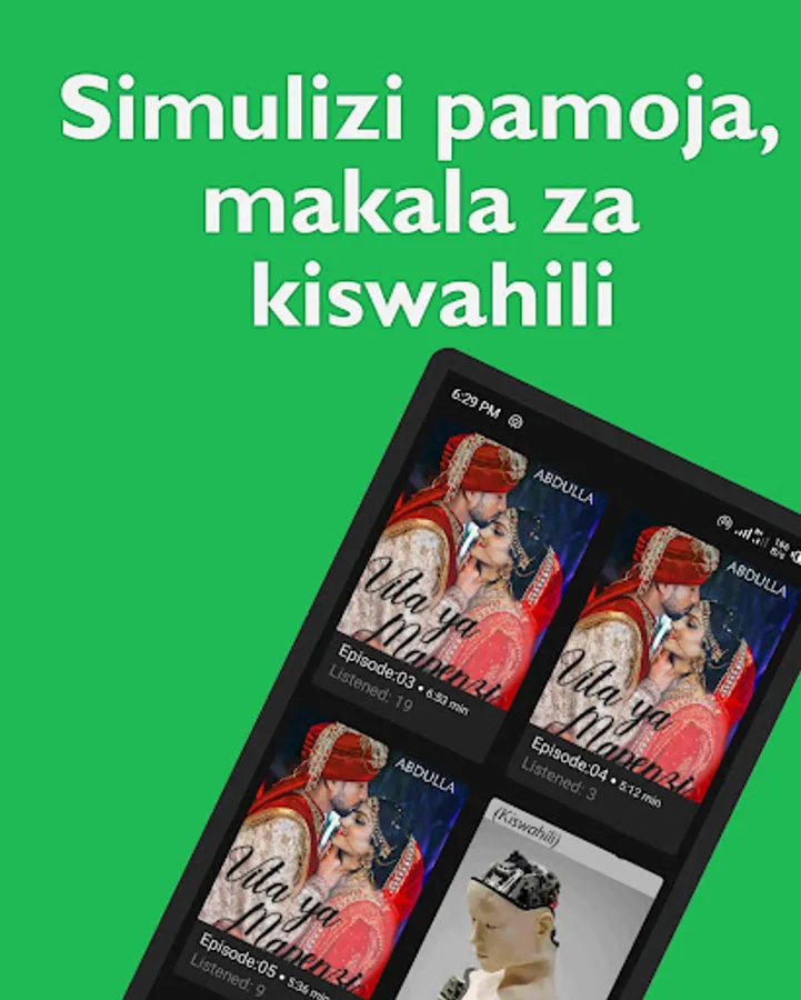 swahiliPodcast ni application inayokuwezesha kusikiliza simulizi za kusisimua za kiswahili pamoja na makala mbali mbali za kiswahili pia unaweza uza simulizi zako kupitia swahiliPodcast app