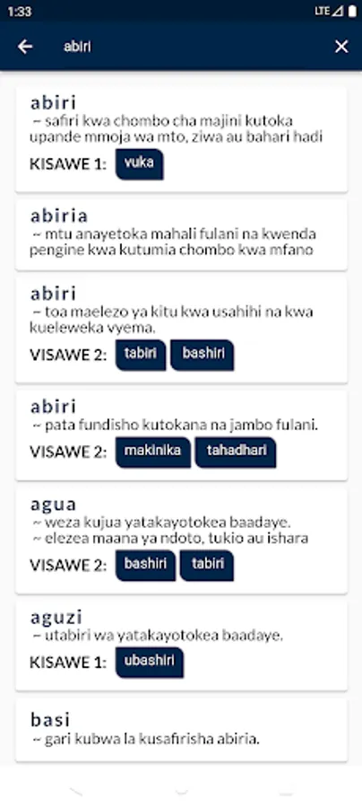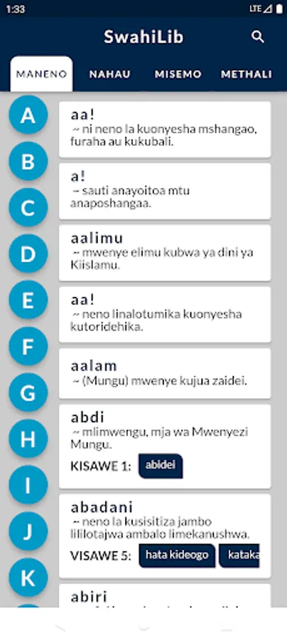 We promise you a user friendly Swahili app equipped with words (maneno), idioms (nahau), sayings(misemo) and proverbs (methali) for your Kamusi ya Kiswahili seamless experience