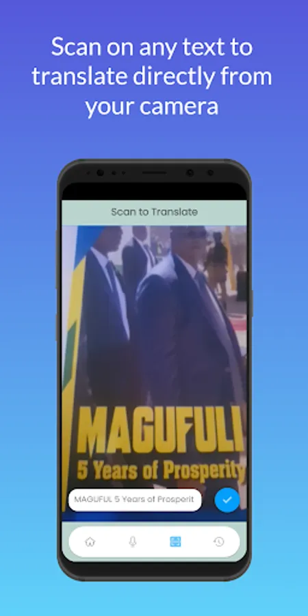 Use your phone's camera to translate any text in real time from your surroundings by scanning the the text using our app.