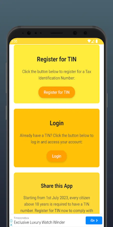 "Tin online" registration has never been this effortless! Download our "app ya tin" and say goodbye to tiresome paperwork and long queues. Whether you're a business owner, an employee, or an investor, obtaining your unique "tin namba" or "tin number" is now just a few taps away.