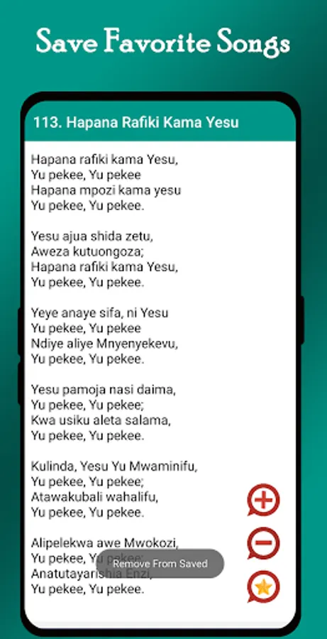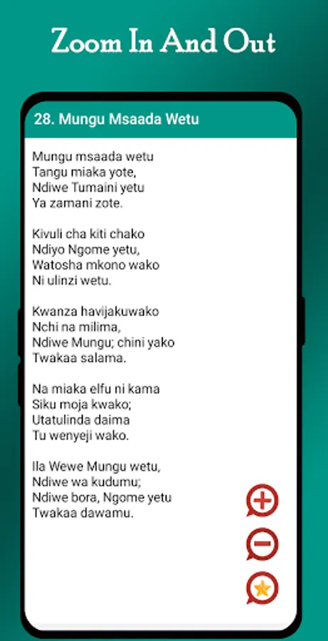 We simply built this app so you can get the full benefit of a modern app for your own Swahili songbook. This is a Modern, Simple, and Awesome app. Check the screenshots. We included English Titles, Search options, Favorites, and many more. It is extremely fast for a better experience. Hope you enjoy it.